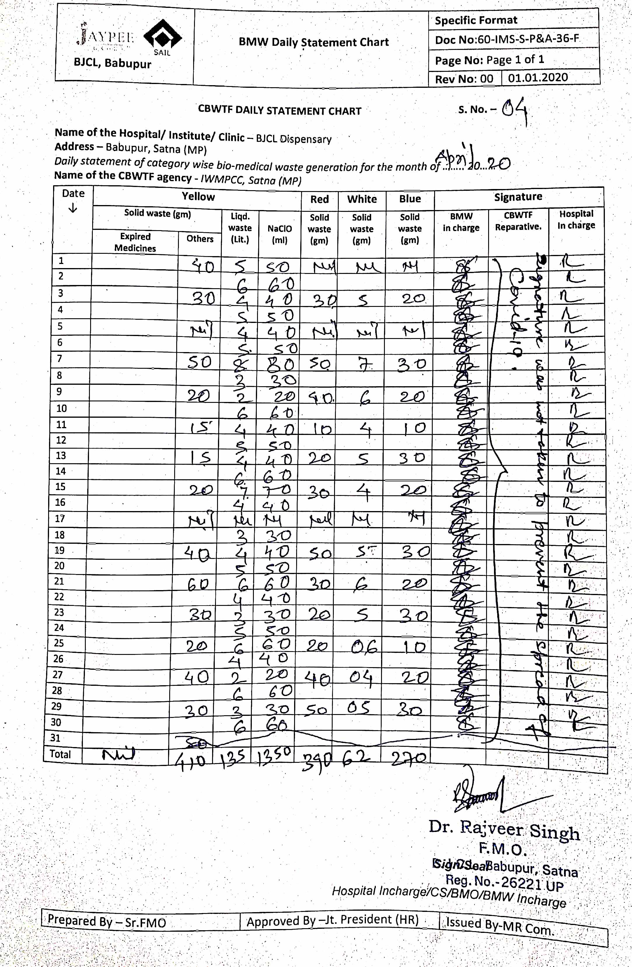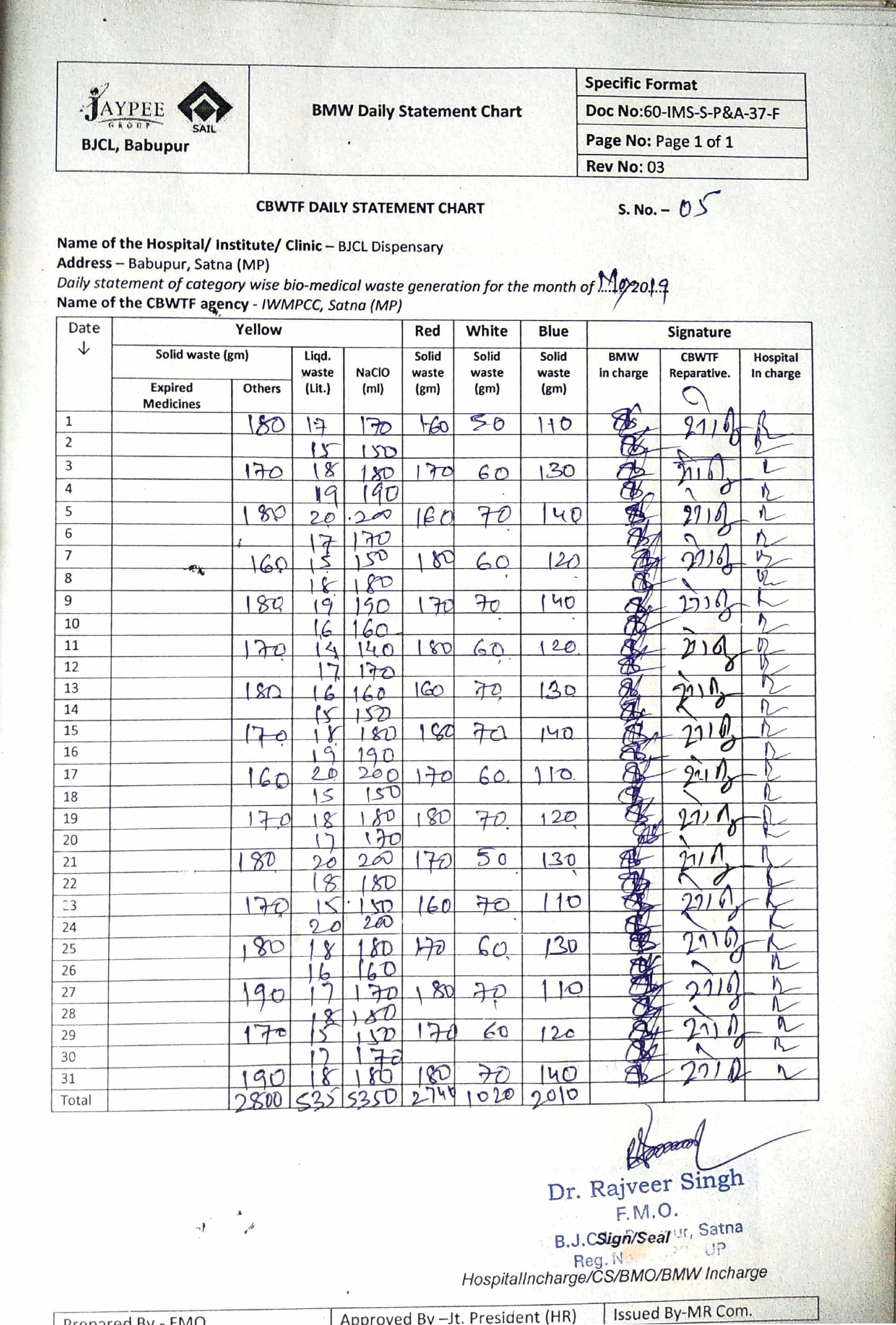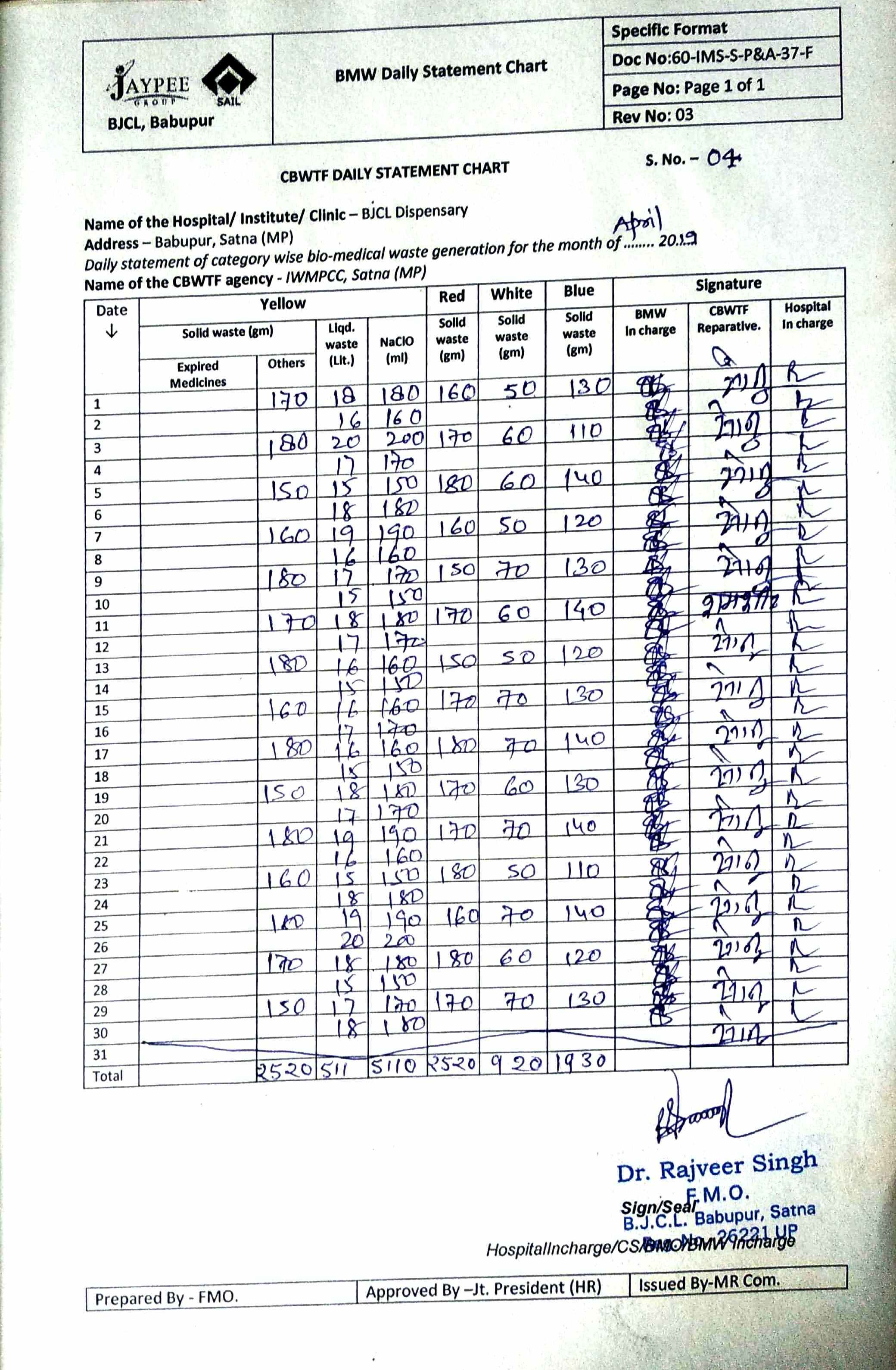 Biomedical Waste Apr'19 (BJGP,BHILAI) |