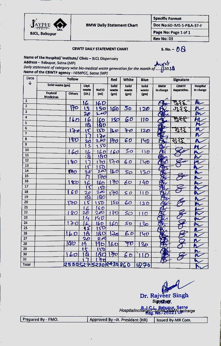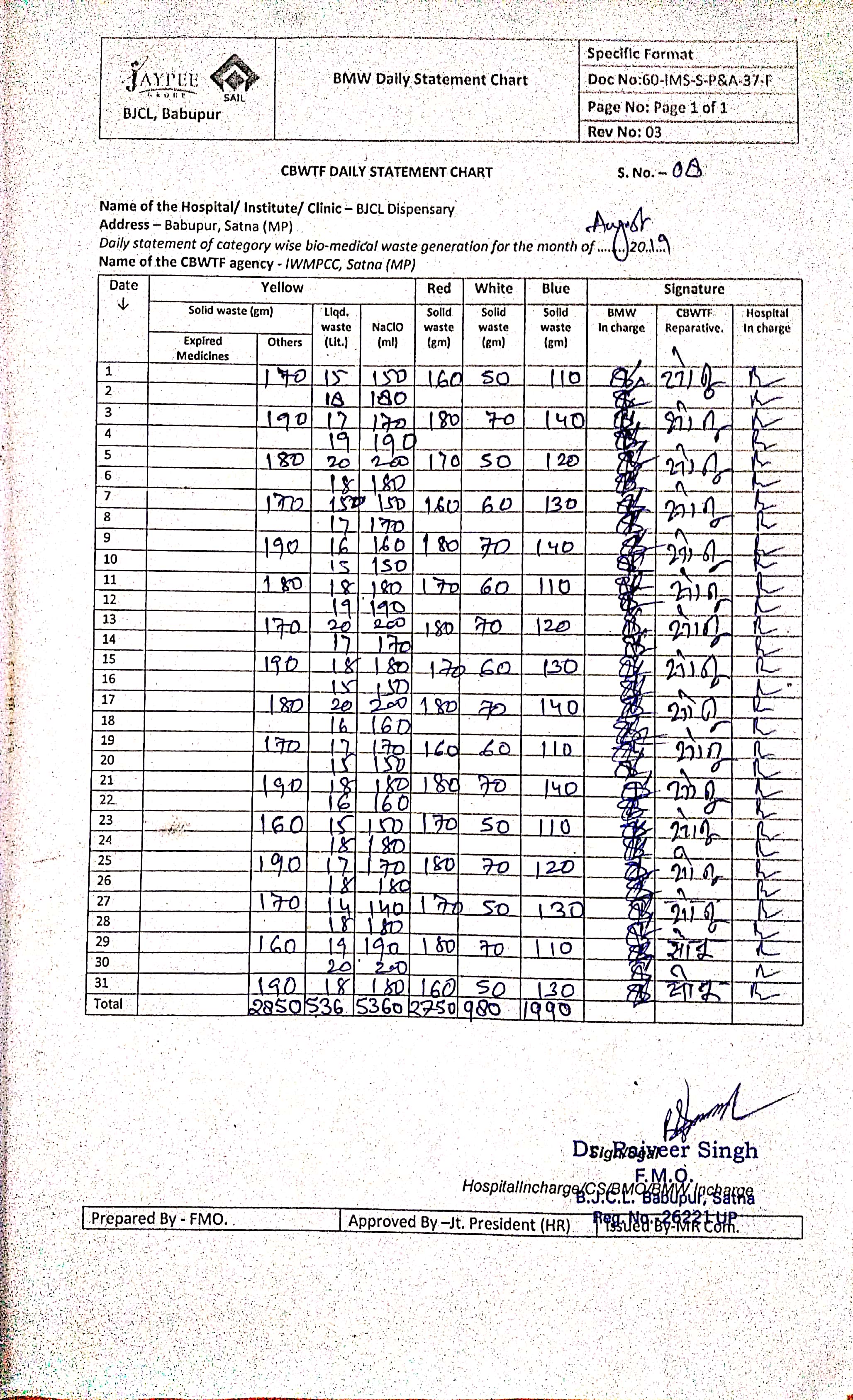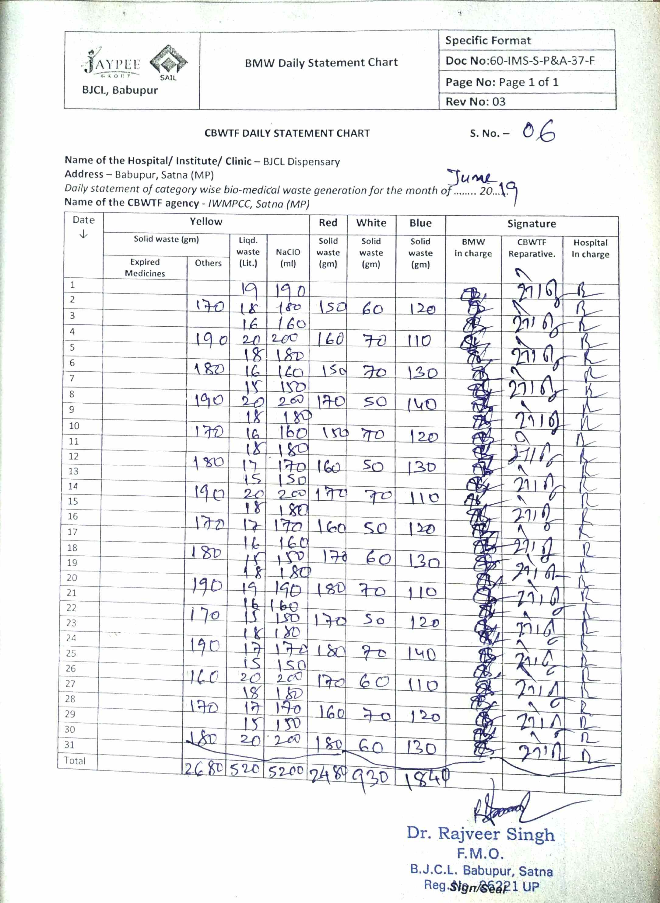 Biomedical Waste Apr'19 (BJGP,BHILAI) |