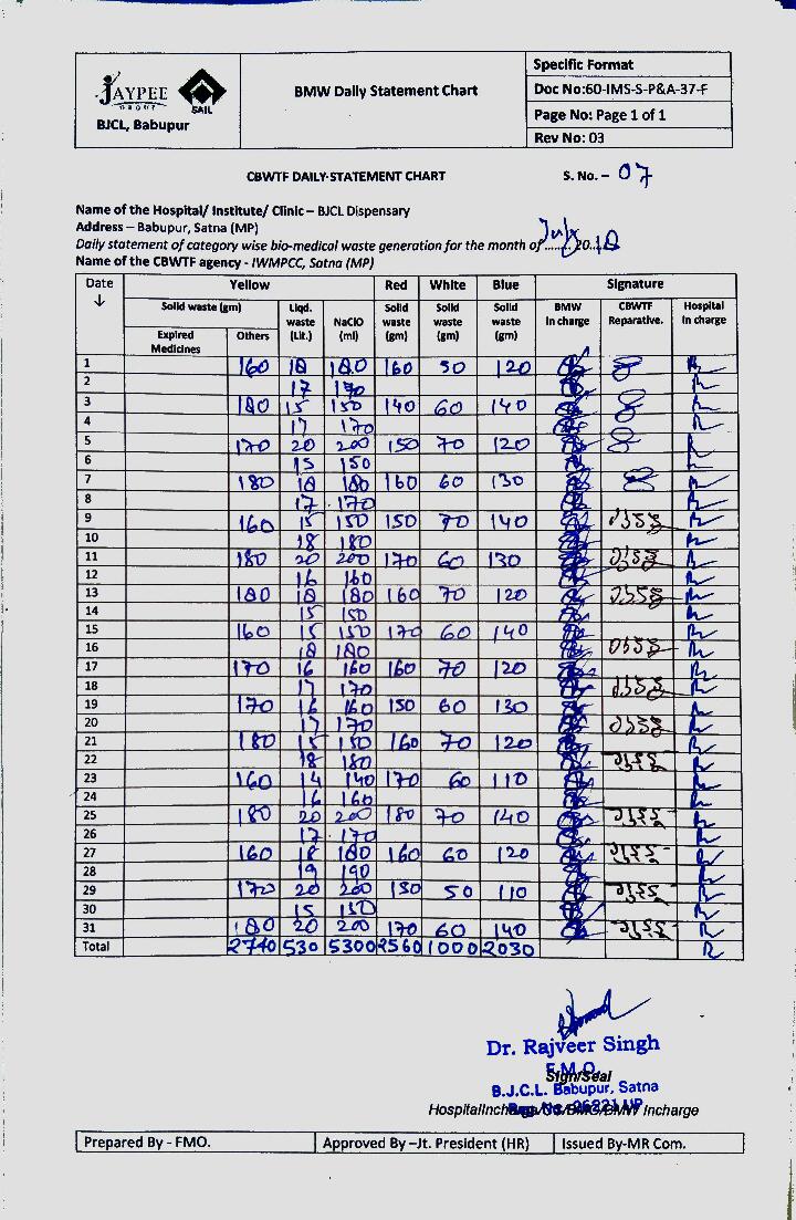 Biomedical waste records for the Month of July 2017 (BJGP) |