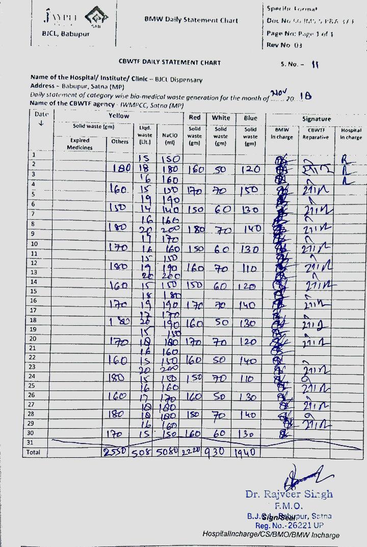 Biomedical Waste Nov 2019 (BJGP, Bhilai) |