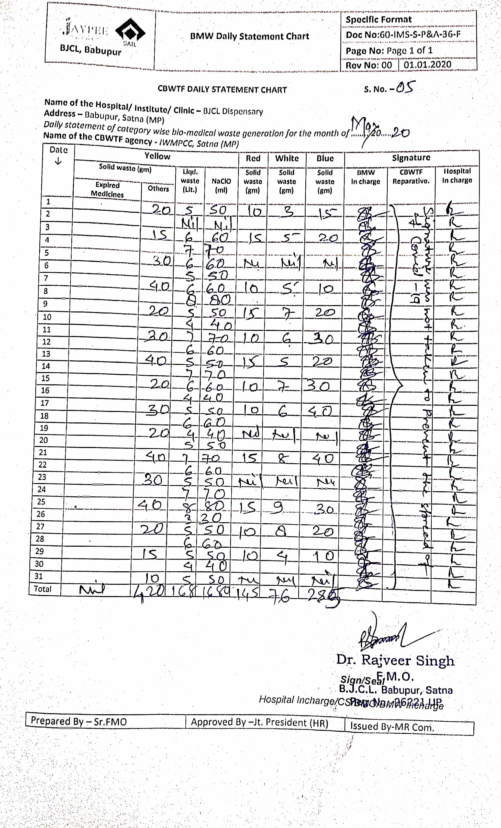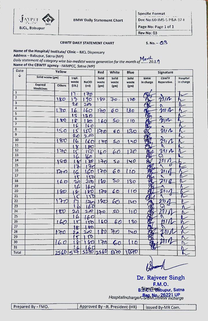 Biomedical Waste Jan 2020 (BJGP, Bhilai) |