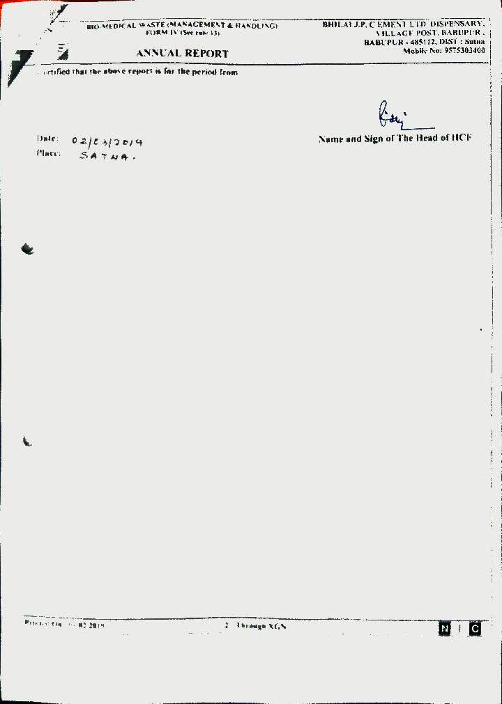 Biomedical Waste Annual Report Form-4 (2019) (BJGP, Bhilai) |