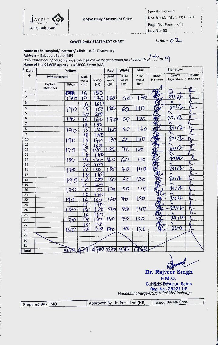 Biomedical Waste Feb'19 (BJGP, BHILAI) |