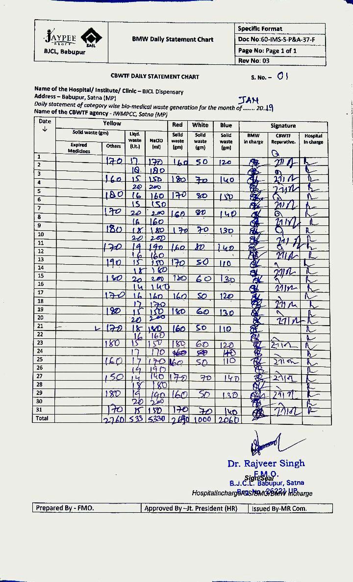 Biomedical Waste Jan'19 (BJGP,BHILAI) |