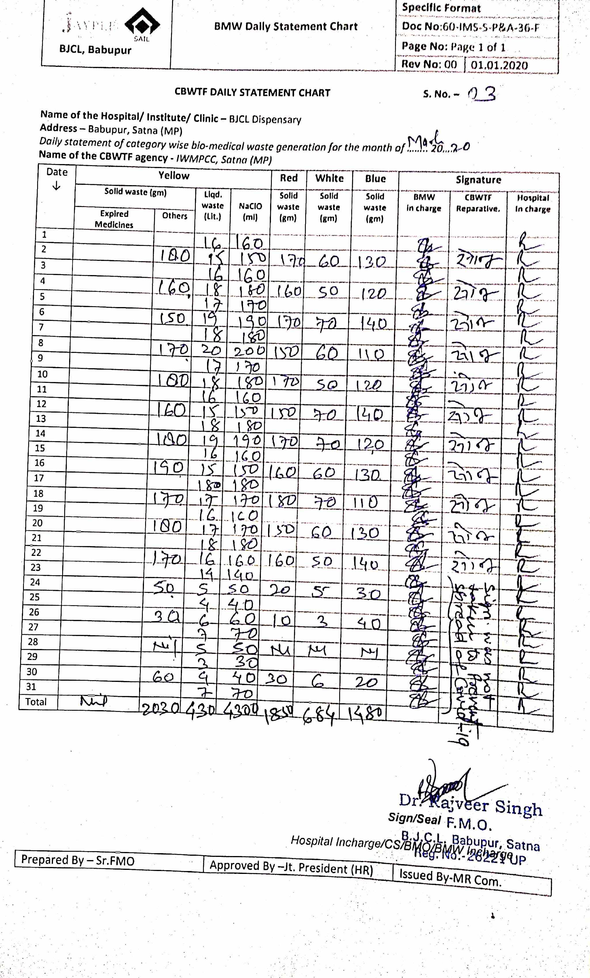 Biomedical Waste Mar'19 (BJGP,BHILAI) |