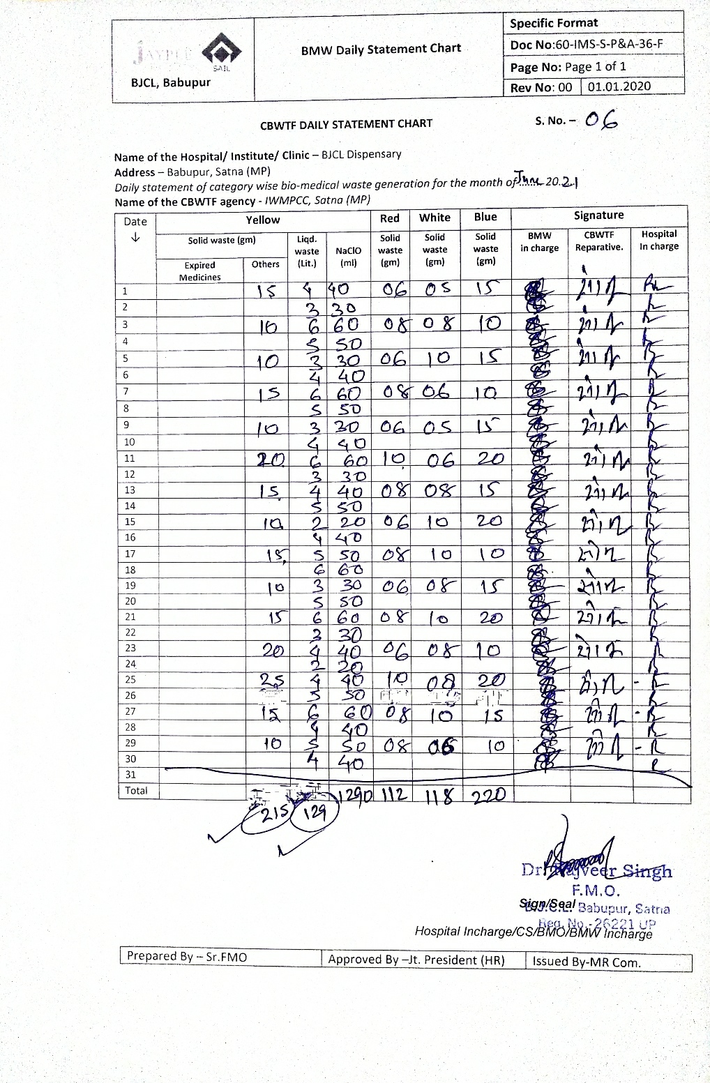 Biomedical Waste Report, January 2021, (BJGP, Bhilai) |