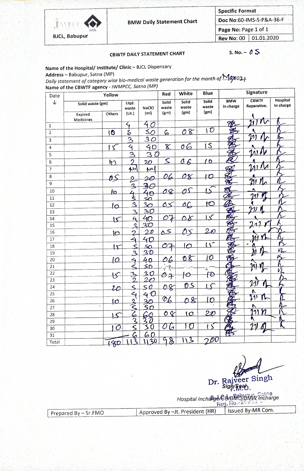 Biomedical Waste Monthly Report, May 2021, (BJGP, Bhilai) |